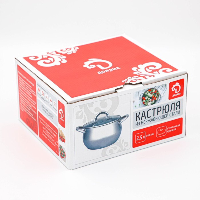 Кастрюля из нержавеющей стали Доляна «Вернер», 2,5 л, d=18 см, с крышкой