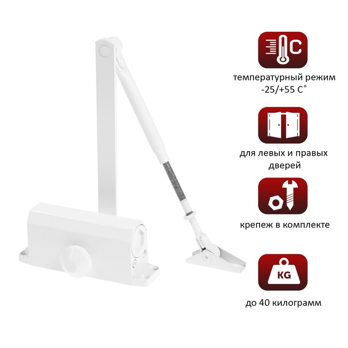 Доводчик дверной ТУНДРА D40WW, до 40 кг, белый