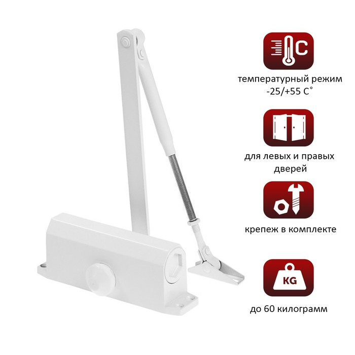 Доводчик дверной ТУНДРА D60WW, до 60 кг, белый