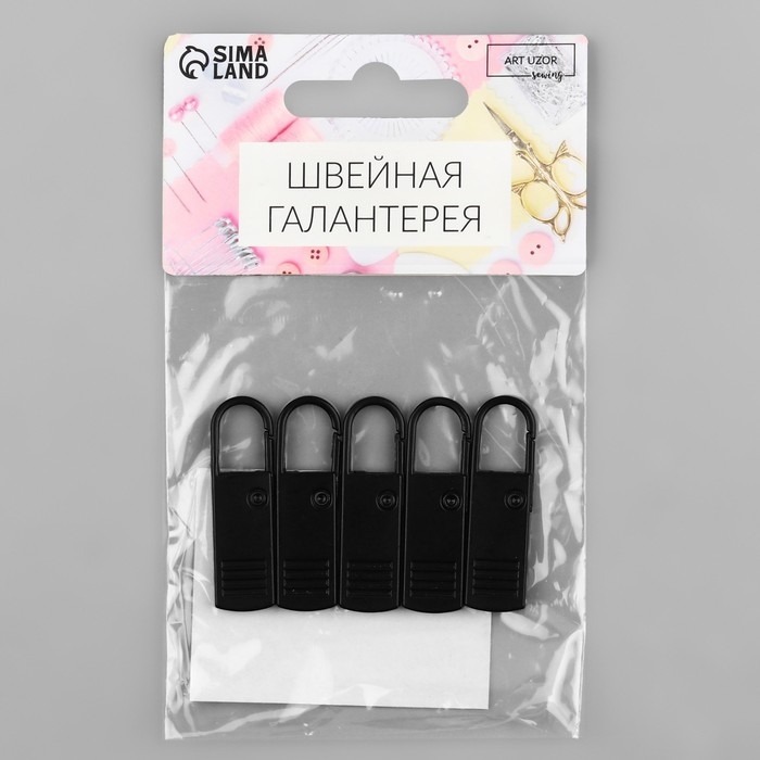 Пуллер для молнии, металлический, 3,7 × 1,1 см, 5 шт, цвет чёрный