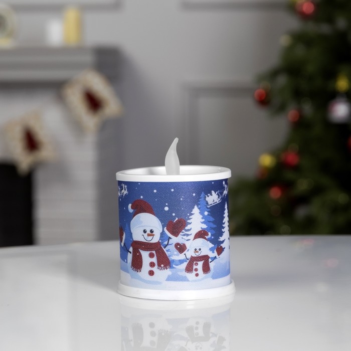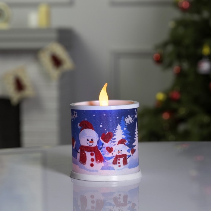 Светодиодная фигура «Свеча со снеговиками» 7.5 × 10 × 7.5 см, пластик, батарейки AG13х3 (в комплекте), свечение мульти