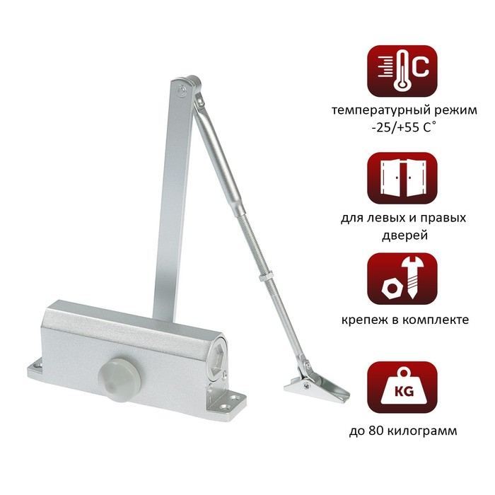 Доводчик дверной ТУНДРА D80SL, от 45-70 кг, цвет серебро