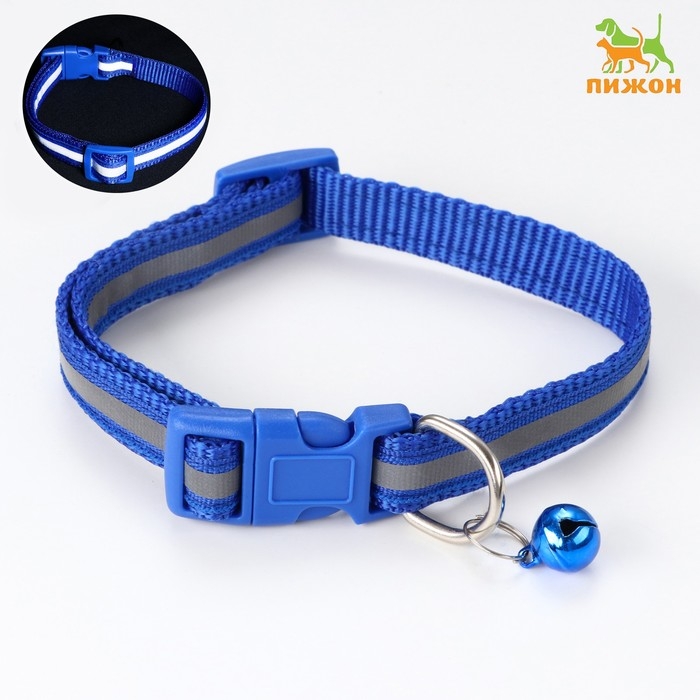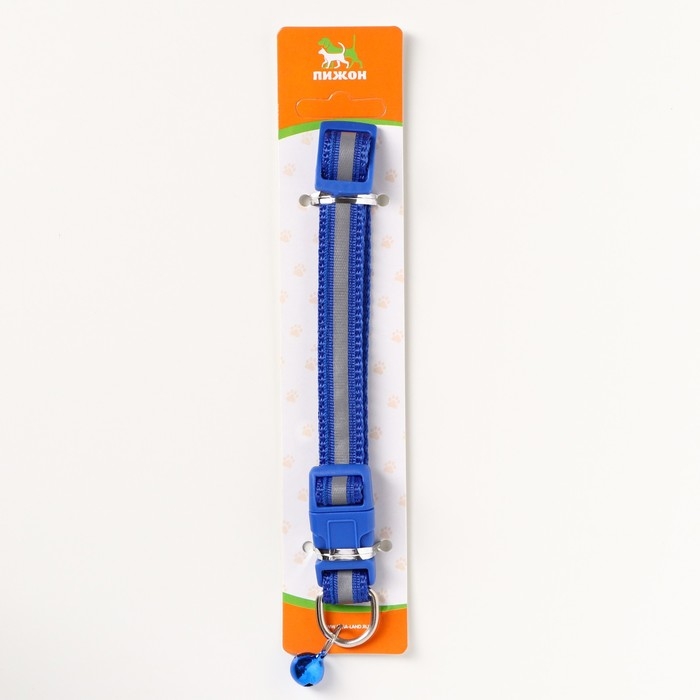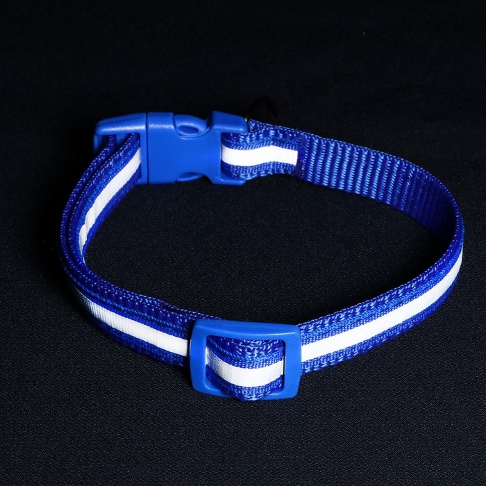 Ошейник двухслойный с фастексом и светоотражающей полосой, 30 х1,5 см, синий