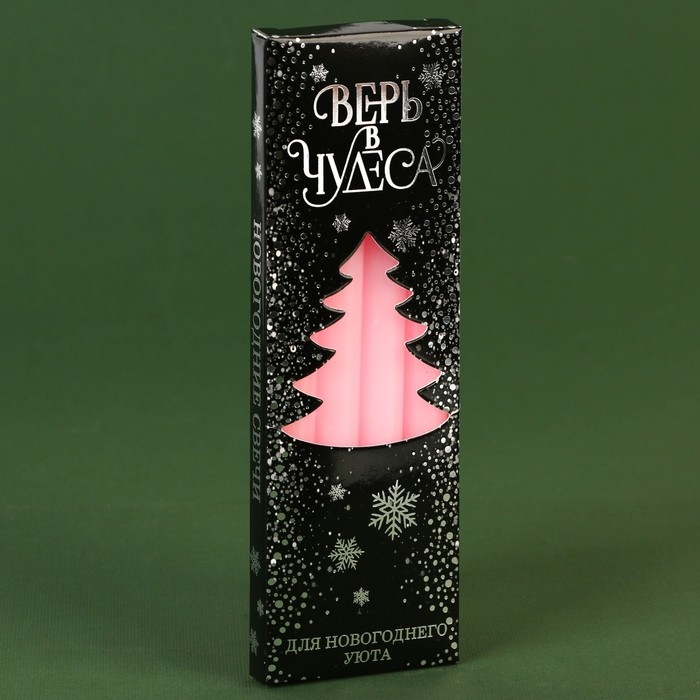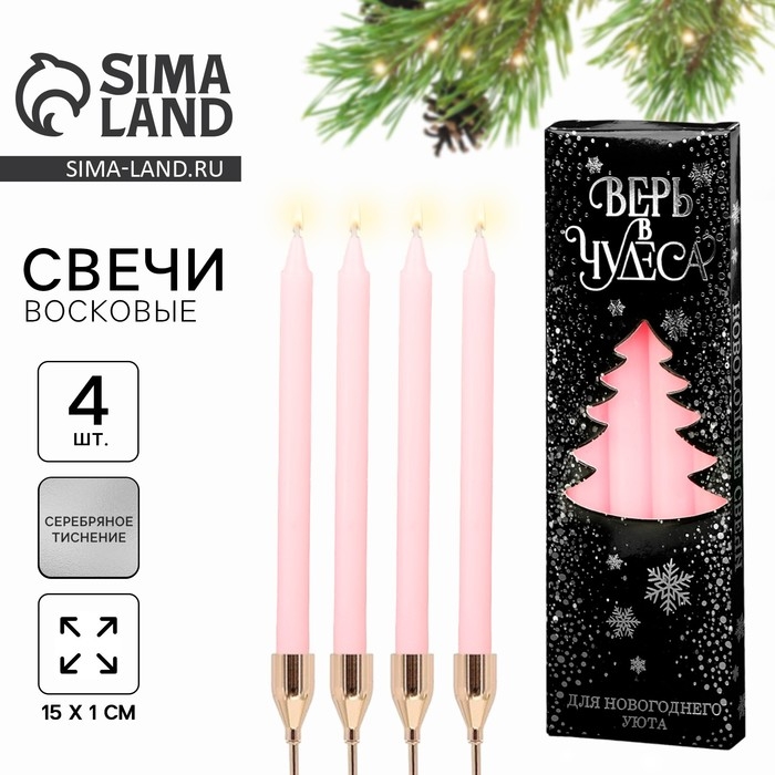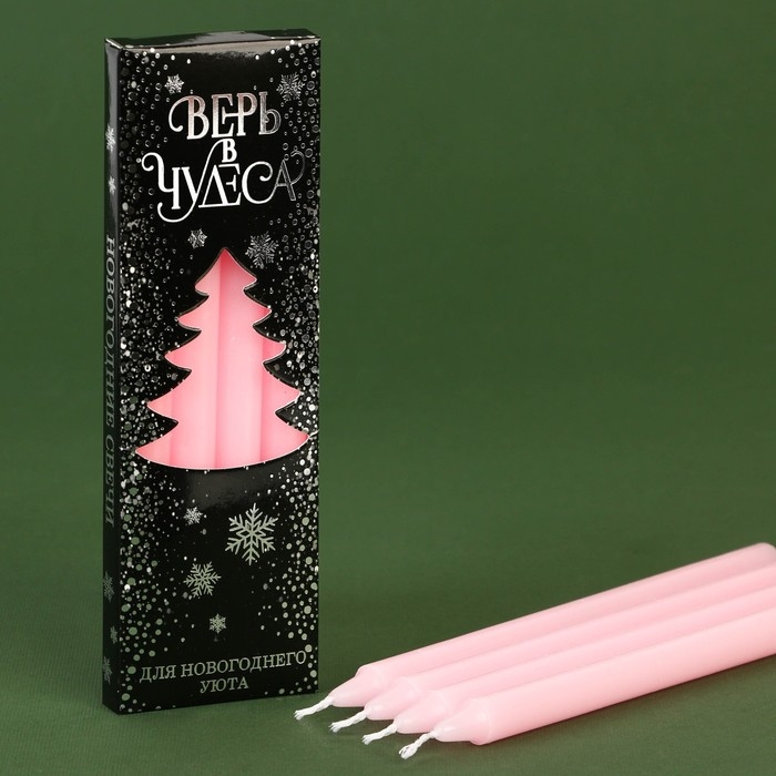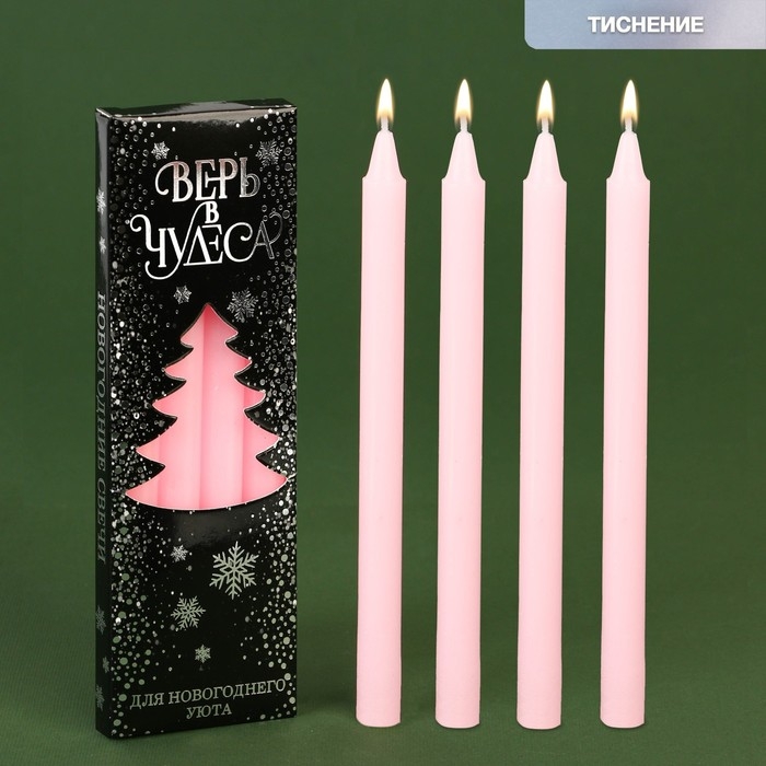 Новогодние восковые свечи «Новый год: Верь в чудеса», набор 4 шт., розовые, 15 х 1 х 1 см.