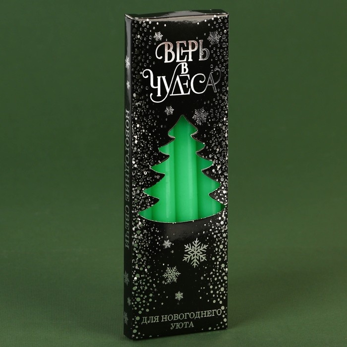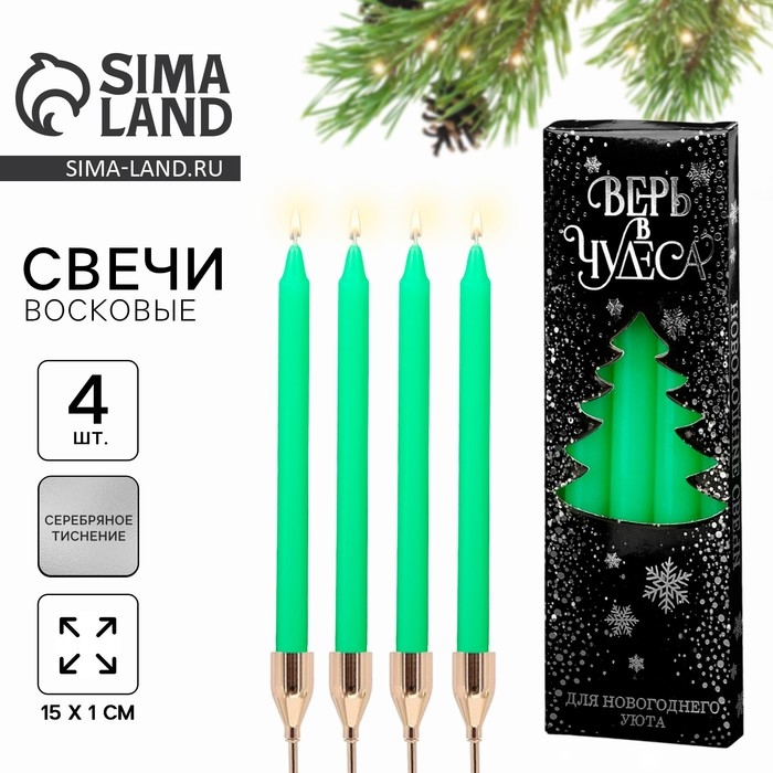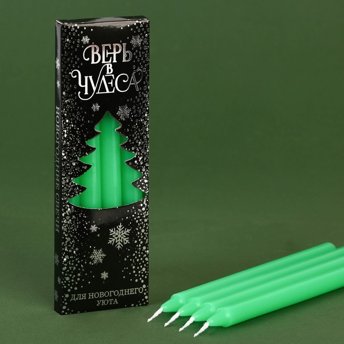 Новогодние восковые свечи «Новый год: Верь в чудеса», набор 4 шт., зеленые, 15 х 1 х 1 см.