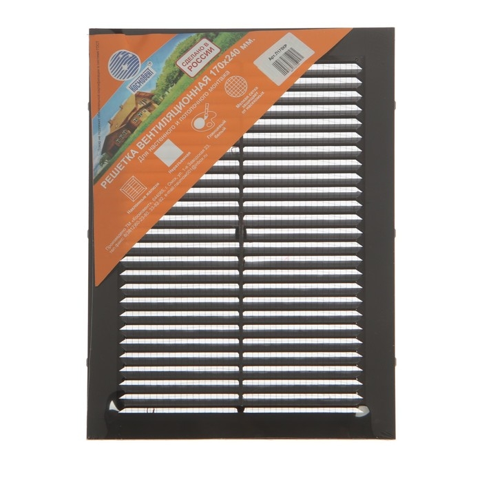 Решетка вентиляционная "КосмоВент" Люкс Л170КР, 240х170мм, с сеткой, неразъемная, коричневая