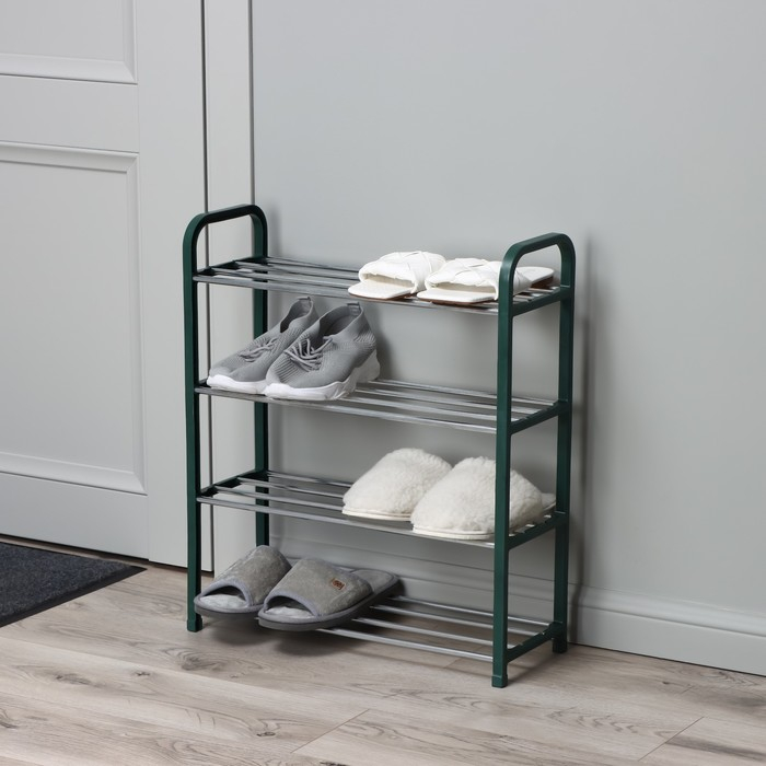 Обувница Доляна, 4 яруса, 50×19×59 см, цвет зелёный