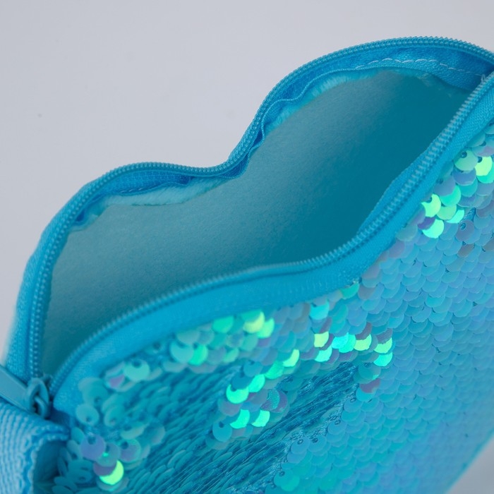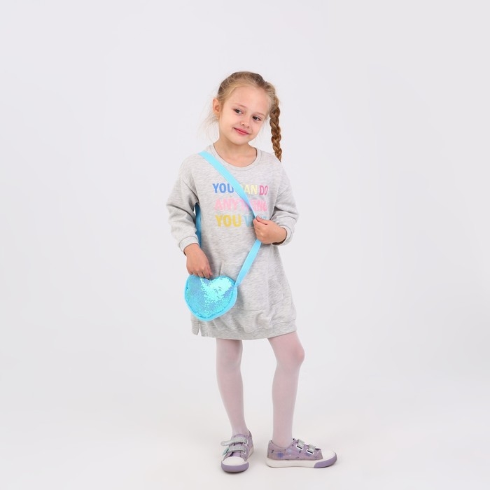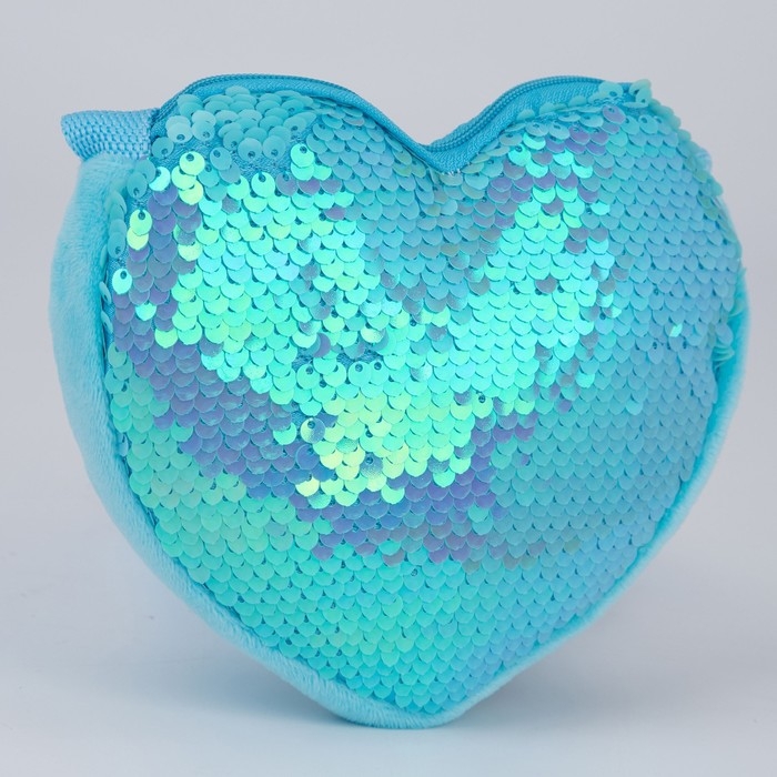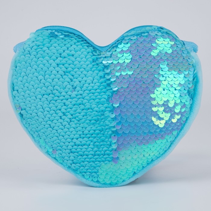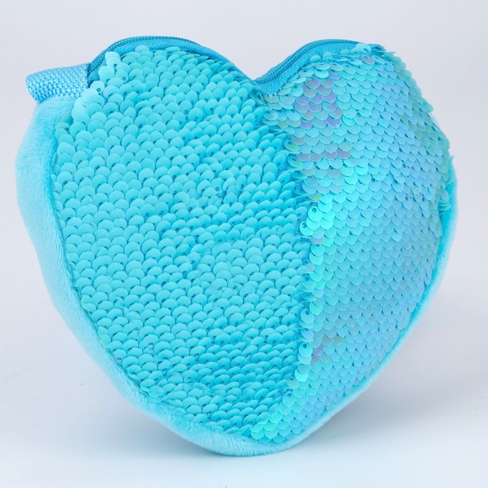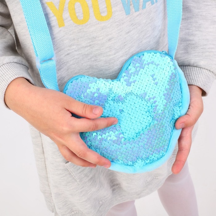 Сумка детская для девочки, с пайетками, сердце, 17 х 15 х 1 см, цвет голубой
