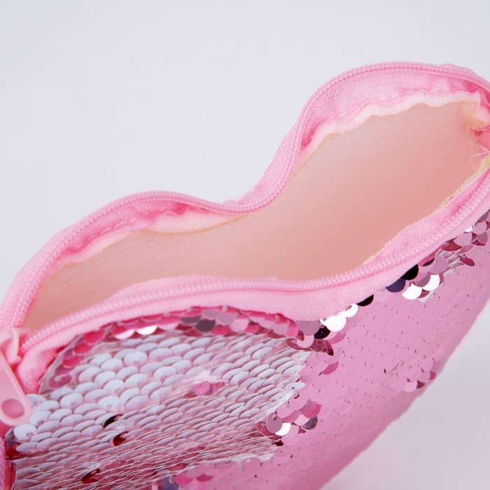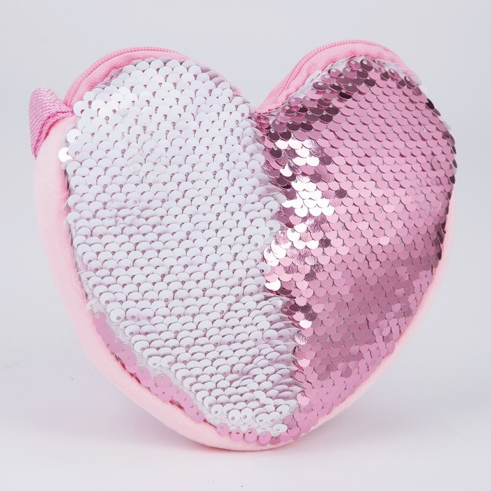 Сумка детская для девочки, с пайетками, сердце, 17 х 15 х 1 см, цвет розово-белый цвет