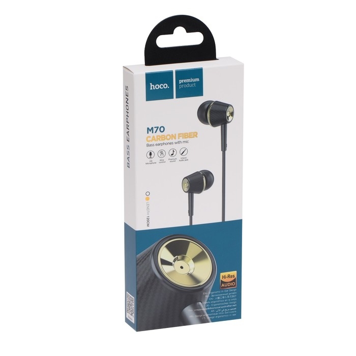 Наушники Hoco M70, проводные, вакуумные, микрофон, Jack 3.5 мм, 1.2 м, черные