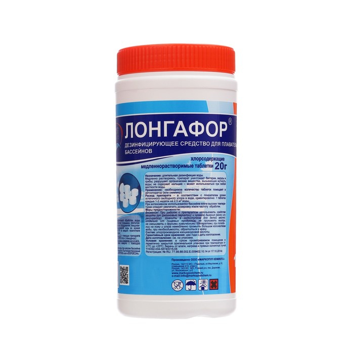 Назначение: длительная "хлорная" дезинфекция. Возможна отгрузка химии для бассейнов оптом партиями уже от 1 гофроящика. Химия для бассейнов "Лонгафор" в течение длительного времени воздействует на бактерии, вирусы и грибы, хлор разрушает органические вещества, вызывающие мутность воды бассейна; препарат противодействует росту микроспор зелёного планктона в открытых бассейнах, имеет осветляющий эффект, не содержит кальция.