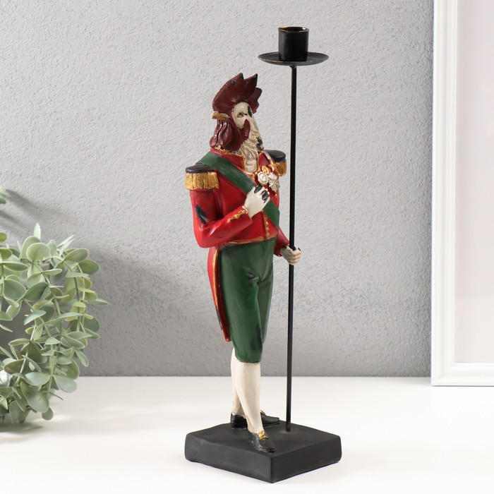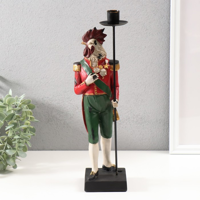 Подсвечник полистоун "Английский шарж-Петух капрал" 11х11х35 см