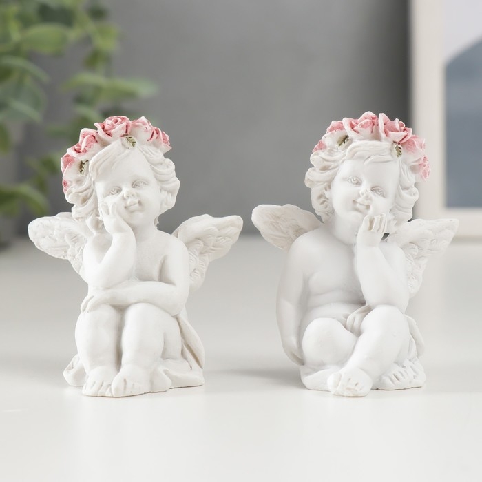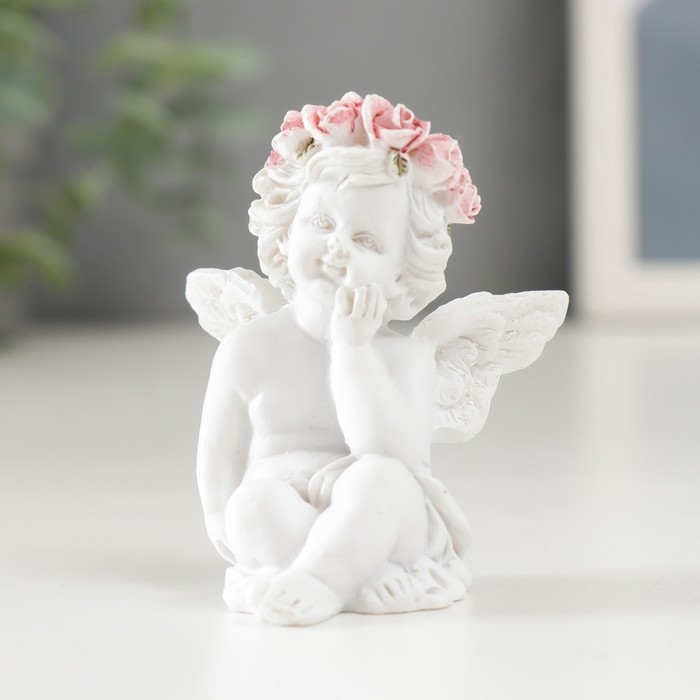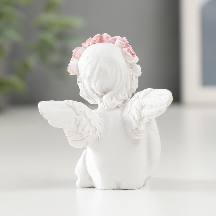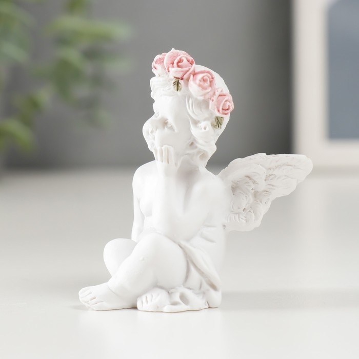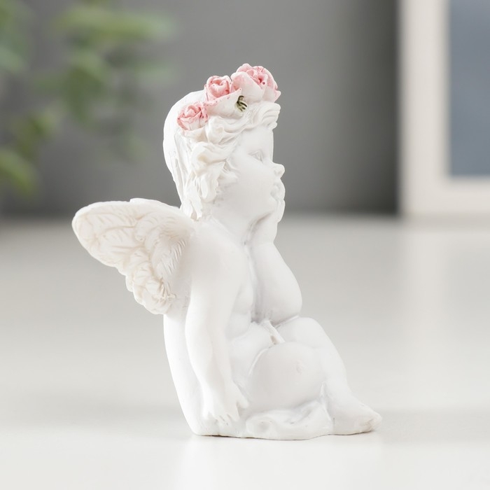 Сувенир полистоун "Белоснежный ангел в розовом веночке сидит" МИКС 6х3,5х4,9 см