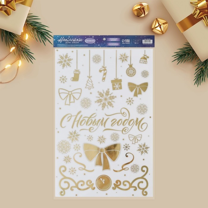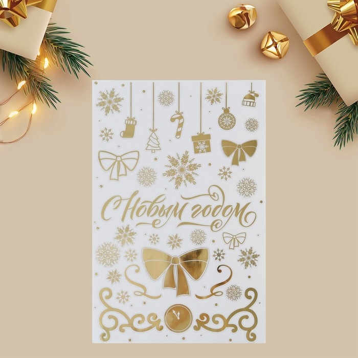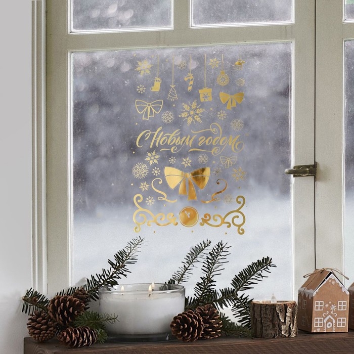 Наклейки новогодние виниловые с фольгированием «Праздник», 30 х 50 см, Новый год