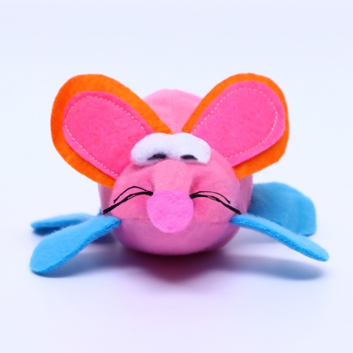 Мышь-неваляшка из искусственного меха на шаре, 11 х 6 см фиолетовый/оранжевый