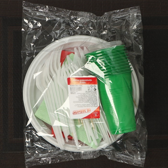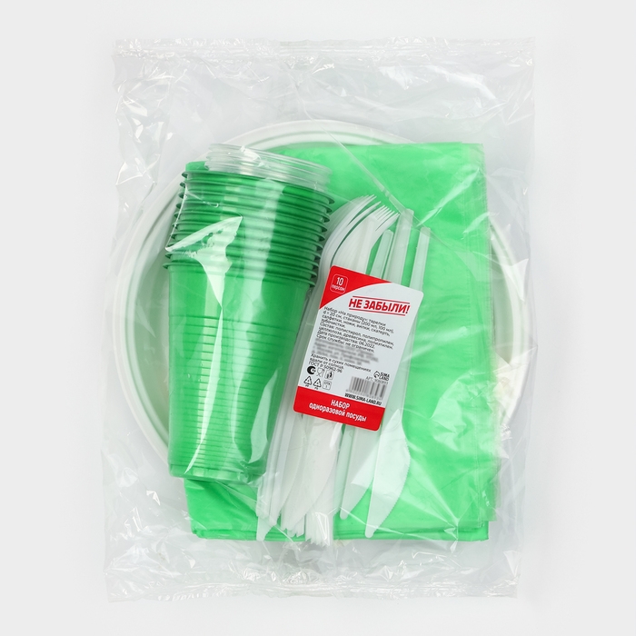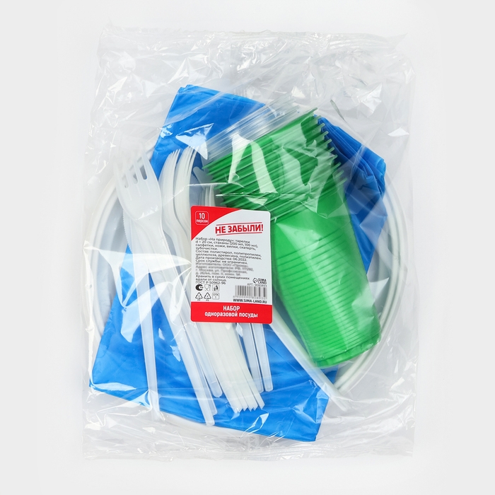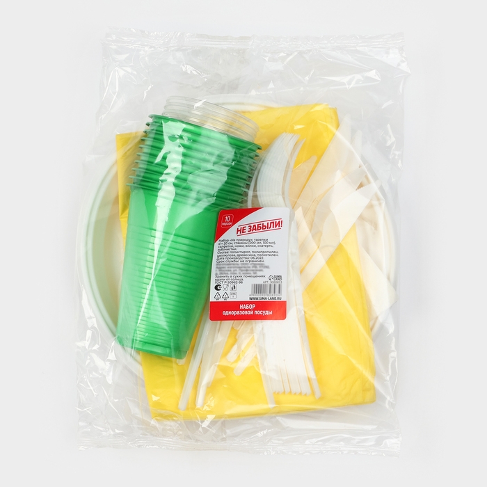 Набор пластиковой одноразовой посуды на 10 персон Не ЗАБЫЛИ! «На природу»