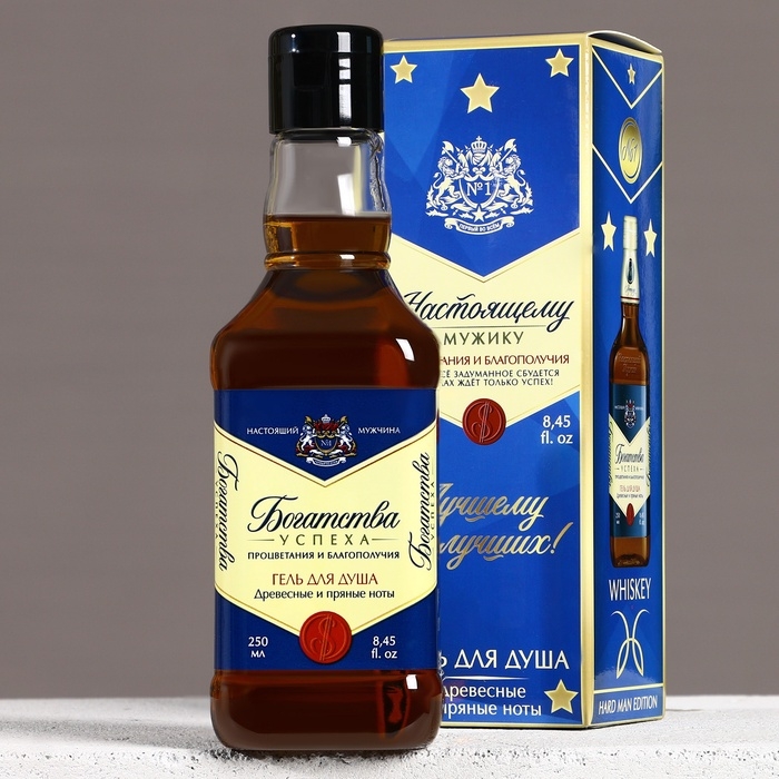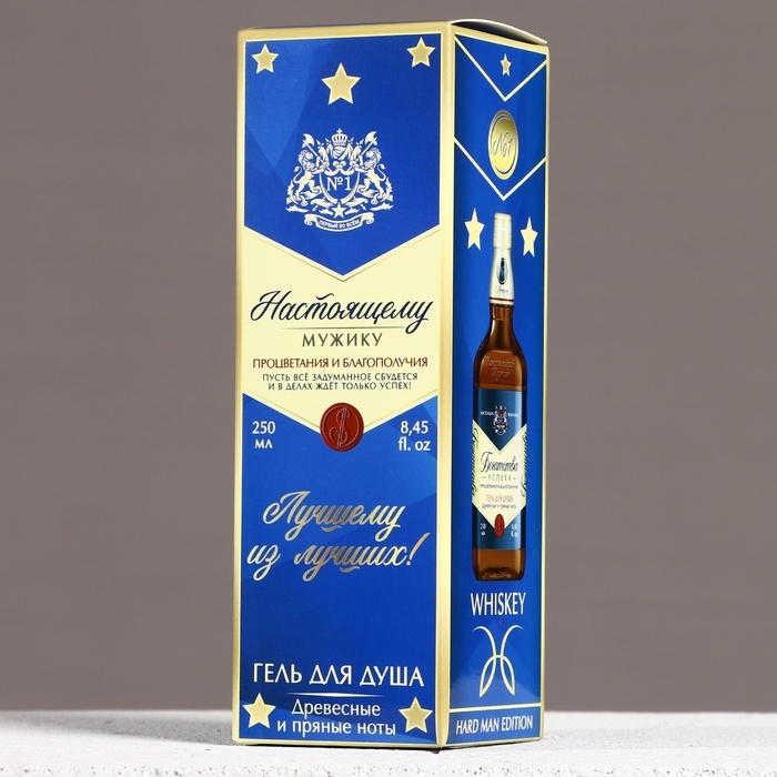 Гель для душа во флаконе виски «Настоящему мужику», 250 мл, аромат древесный с пряными нотами, Новый Год