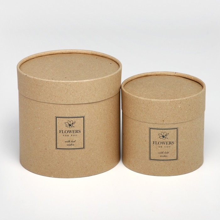 Набор шляпных коробок из крафта 2 в 1, упаковка подарочная, «Flowers», 12 х 12, 15 х 15 см