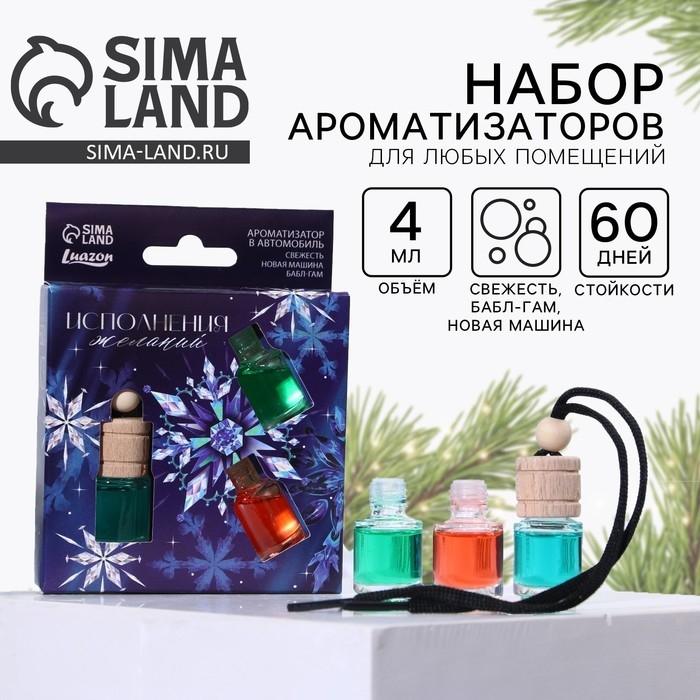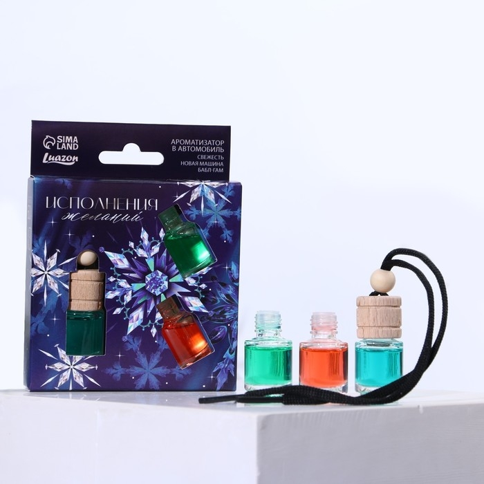 Ароматизаторы в машину новогодние «Исполнения желаний» на Новый год, свежесть, новая машина, бабл-гам (набор 3 шт)