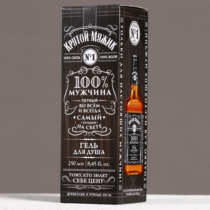 Гель для душа во флаконе виски «100% мужчина», 250 мл, аромат сандала и бергамота, Новый Год