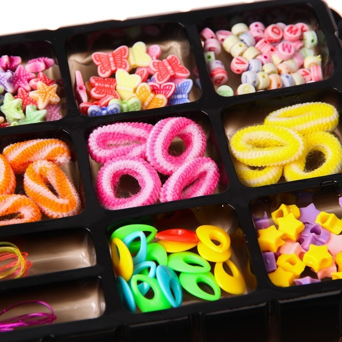 С таким набором девочка сможет вдохновиться героям любимых мультфильмов и сделать ожерелье и браслеты своими руками. Также в наборе есть резиночки для создания стильной причёски.