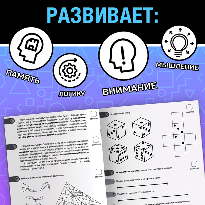 С рабочей тетрадью вы сможете самостоятельно заниматься с ребёнком и развивать мышление, логику, память и внимание.