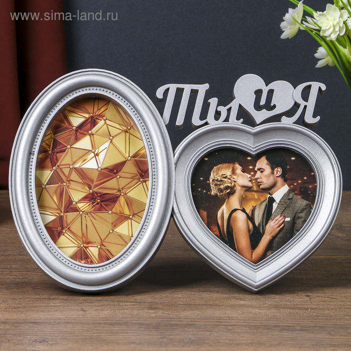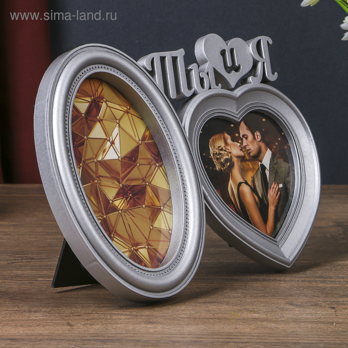 Фоторамка пластик на 2 фото 10х10, 10х15 см "Ты и я" серебро 18,5х27х2 см