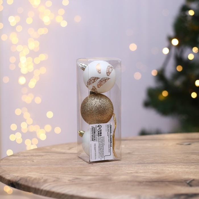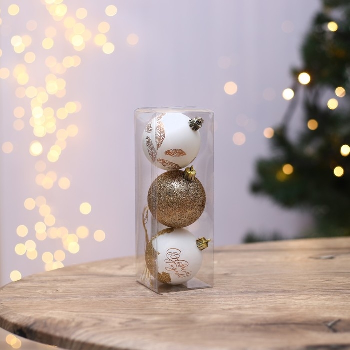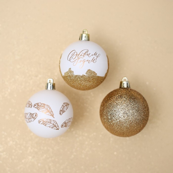 Шары ёлочные новогодние «С Новым годом!», на Новый год, пластик, d=6, 3 шт., цвет белое золото