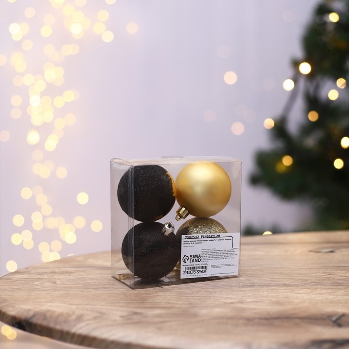 Шары ёлочные новогодние «Новогодних чудес», на Новый год, пластик, d=6, 4 шт., цвет черное золотой