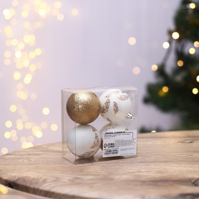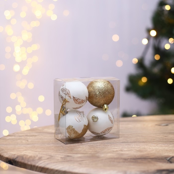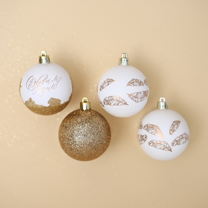 Шары ёлочные новогодние «С Новым годом!», на Новый год, пластик, d=6, 4 шт., цвет белое золото