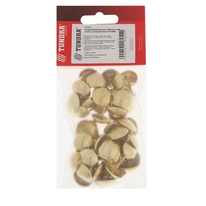 Гвозди ТУНДРА, декоративные, обивочные, 19х22 мм, золото, фасовка 50 шт