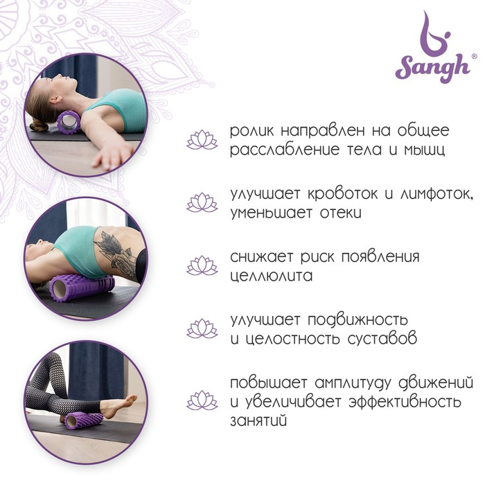 Ролик массажный Sangh, 45х15 см, цвет фиолетовый
