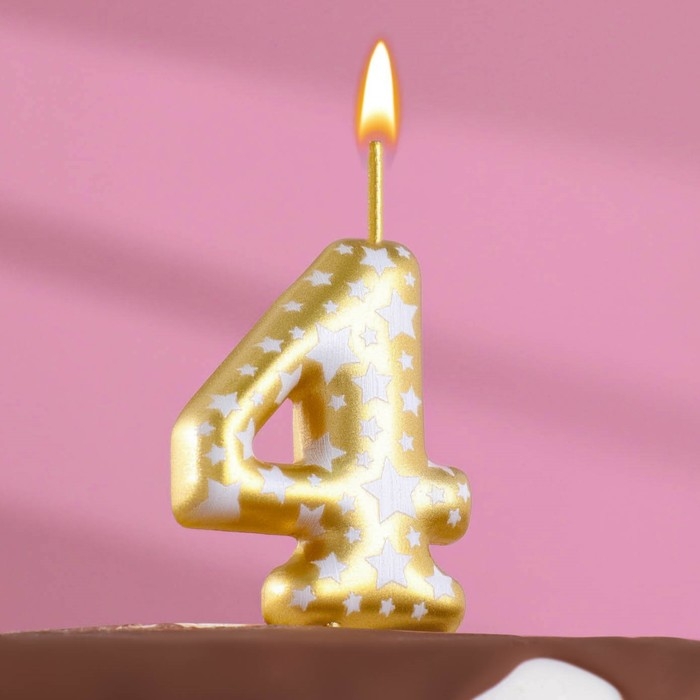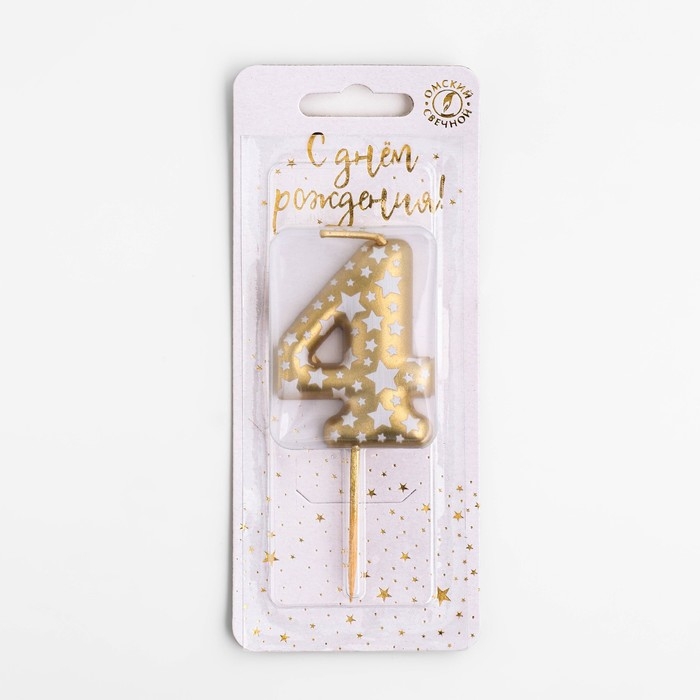 Свеча для торта "Золотая со звездами", цифра 4, 5,5 см