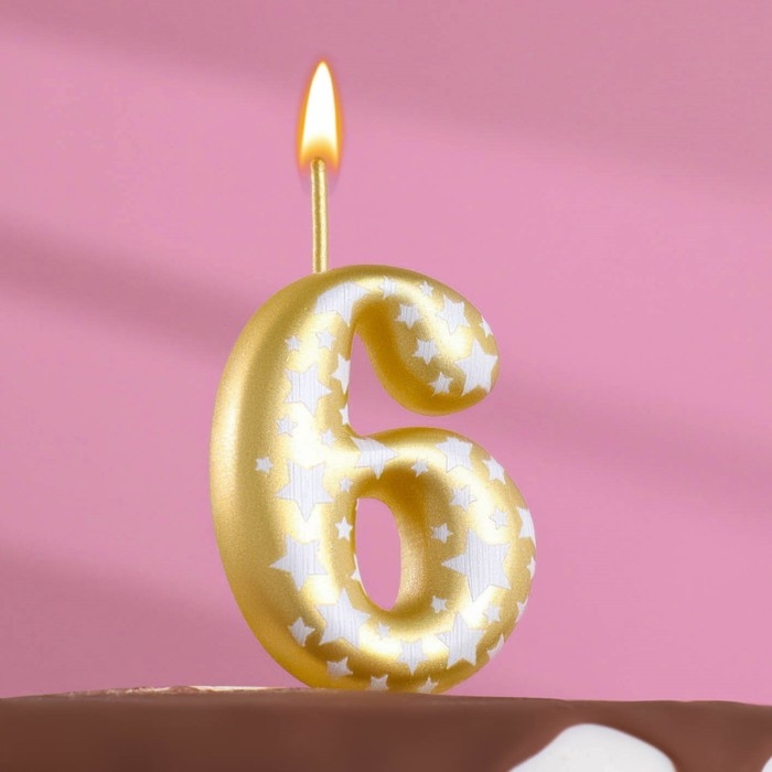 Свеча для торта "Золотая со звездами", цифра 6, 5,5 см