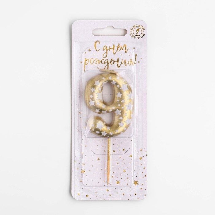 Свеча для торта "Золотая со звездами", цифра 9, 5,5 см