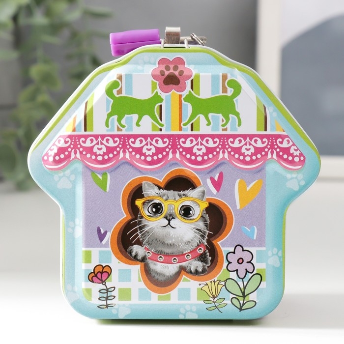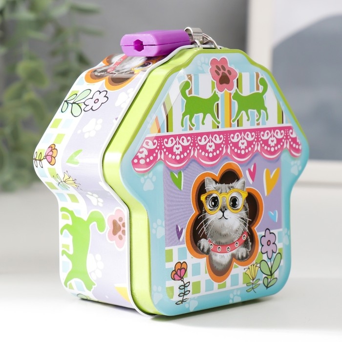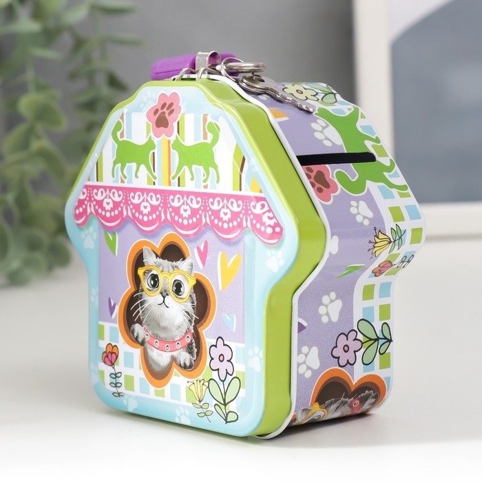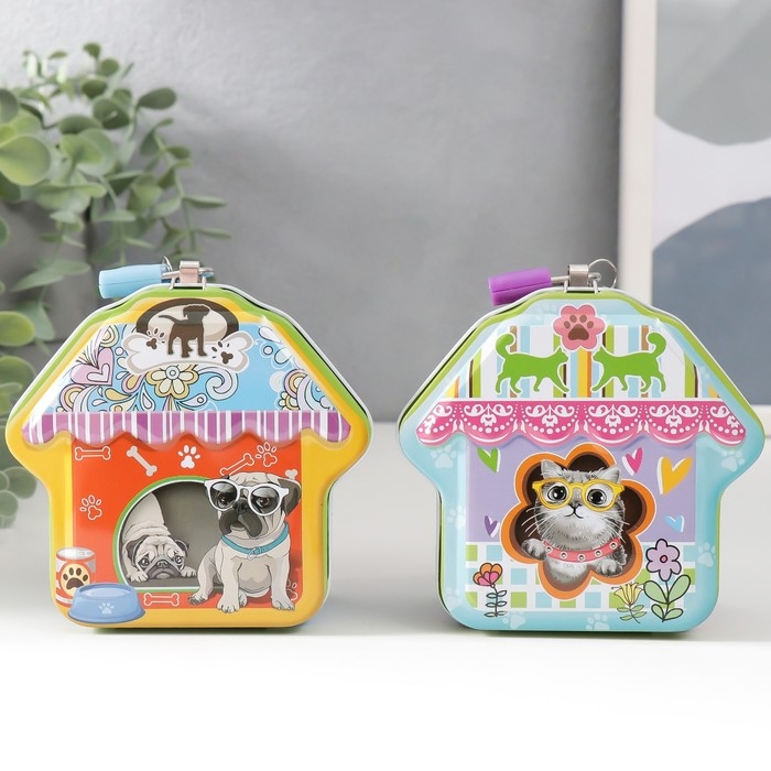 Копилка металл "Будка с животным" МИКС 9х10х5 см