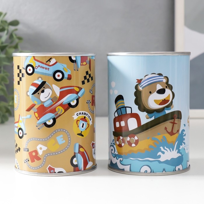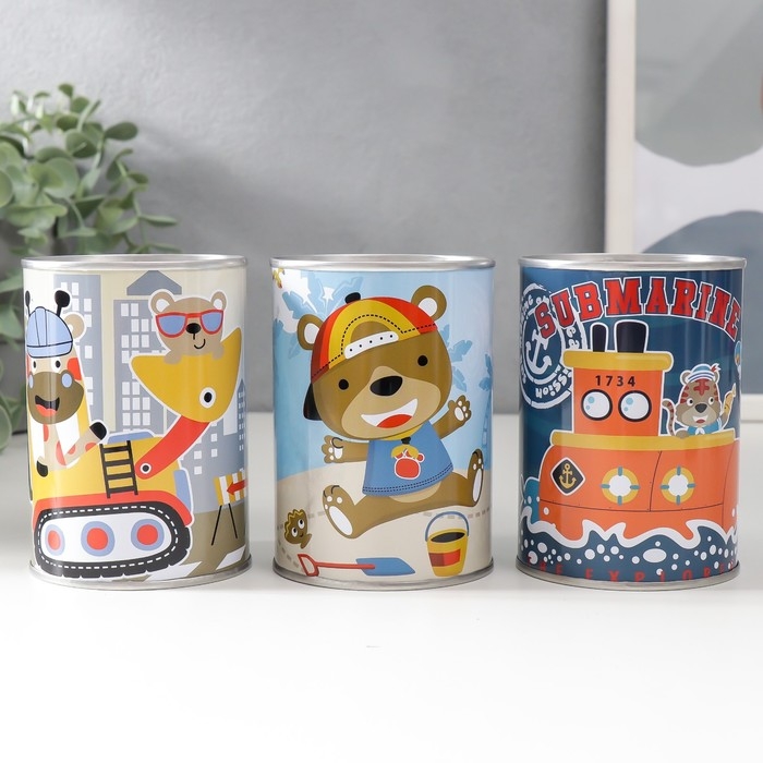 Копилка металл банка "Весёлые приключения" МИКС 7,5х7,5х10 см