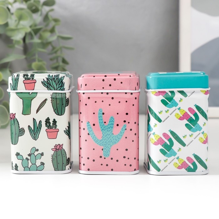 Шкатулка металл квадрат "Кактус" МИКС 4,5х4,5х7 см