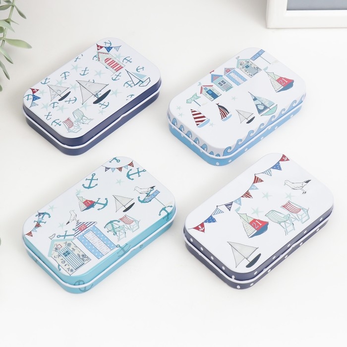 Шкатулка металл прямоугольная "Морской бриз" МИКС 5,8х9,5х2,2 см