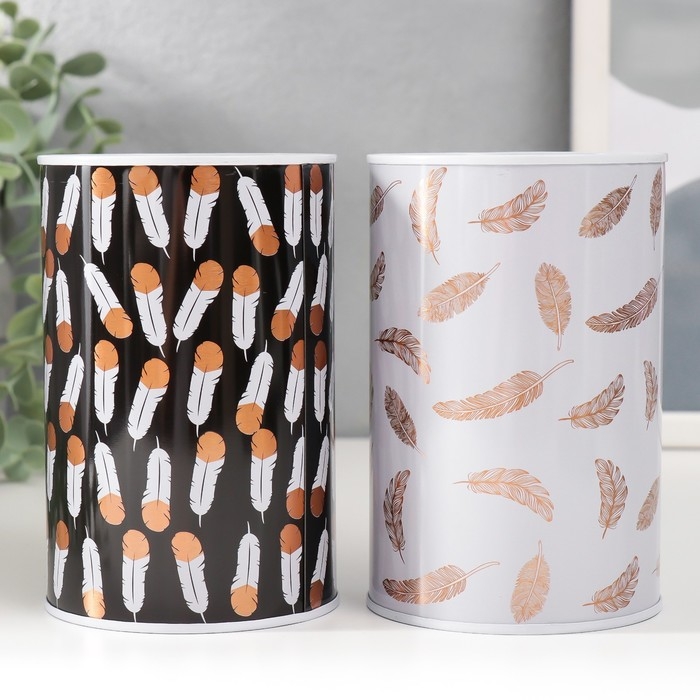 Копилка металл "Пёрышки" МИКС 8х8х12,5 см
