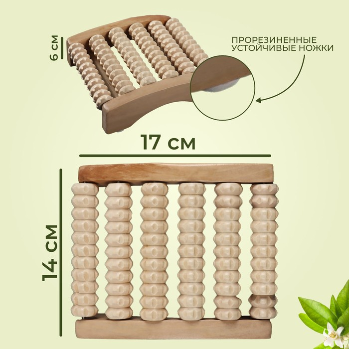 Массажёр для ног «Ножное счастье», 17 × 14 × 6 см, 6 рядов, деревянный