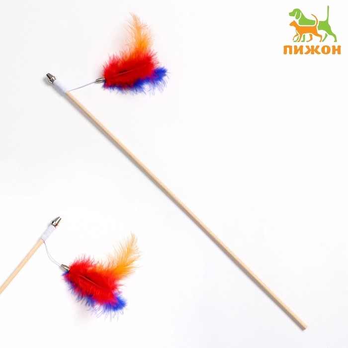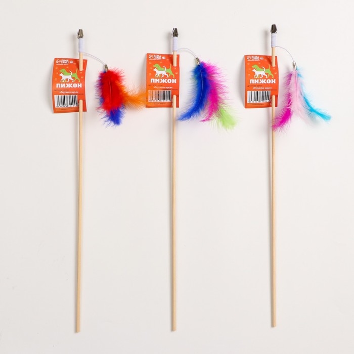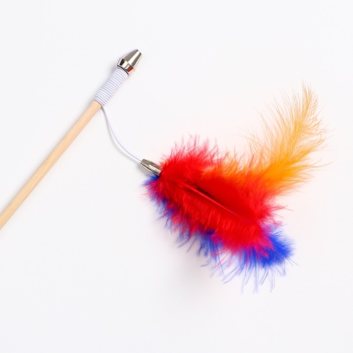 Дразнилка - удочка "Радужные перья" на деревянной палочке, микс цветов