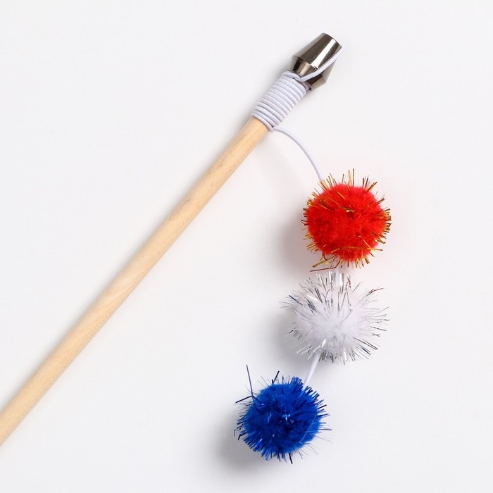 Дразнилка с цветным шариком и перьями, 49 см, палочка микс цветов