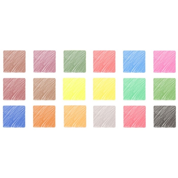 - Набор состоит из 18 цветов: красный, алый, розовый, пурпурный, желтый, канареечный, тыквенный, оранжевый, персиковый, салатовый, зеленый, темно-зеленый, голубой, синий, фиолетовый, коричневый, серый, черный;