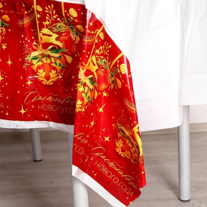 Новогодняя скатерть одноразовая «Счастливого нового года», 137х180 см