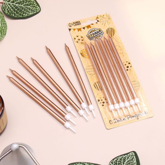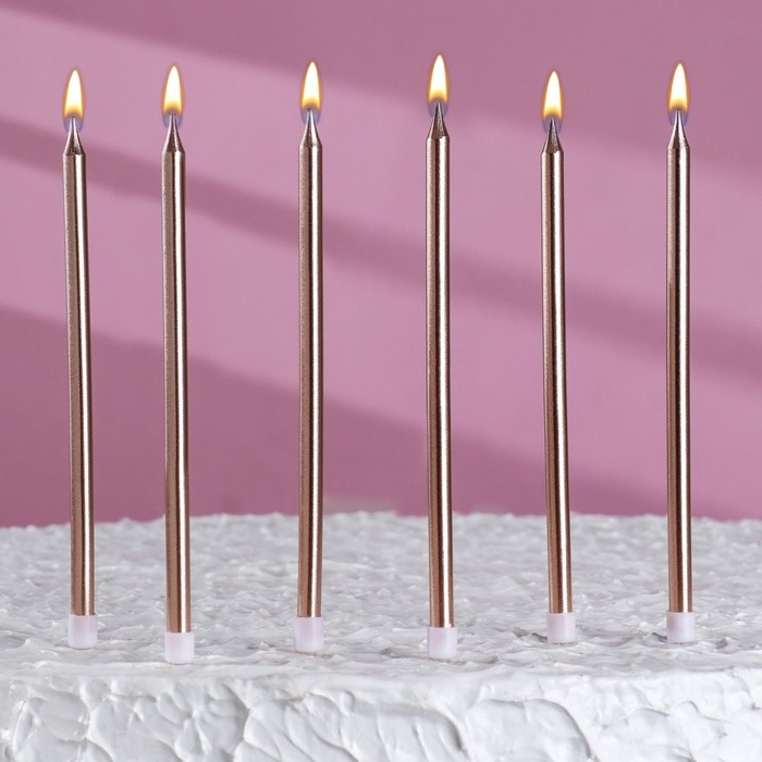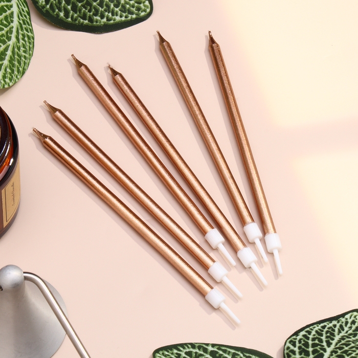 Свечи в торт "Ройс", 6 шт, высокие, 12,5 см, шампань металлик