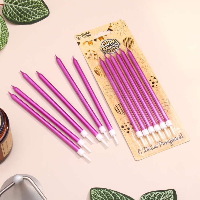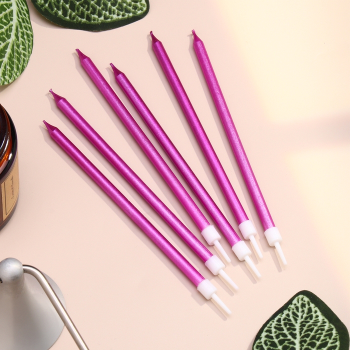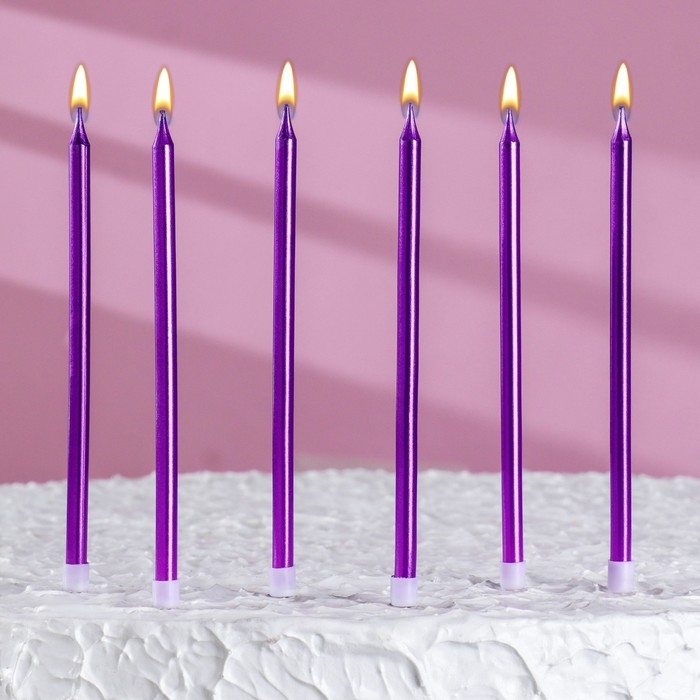 Свечи в торт "Ройс", 6 шт, высокие, 12,5 см, фиолетовый металлик