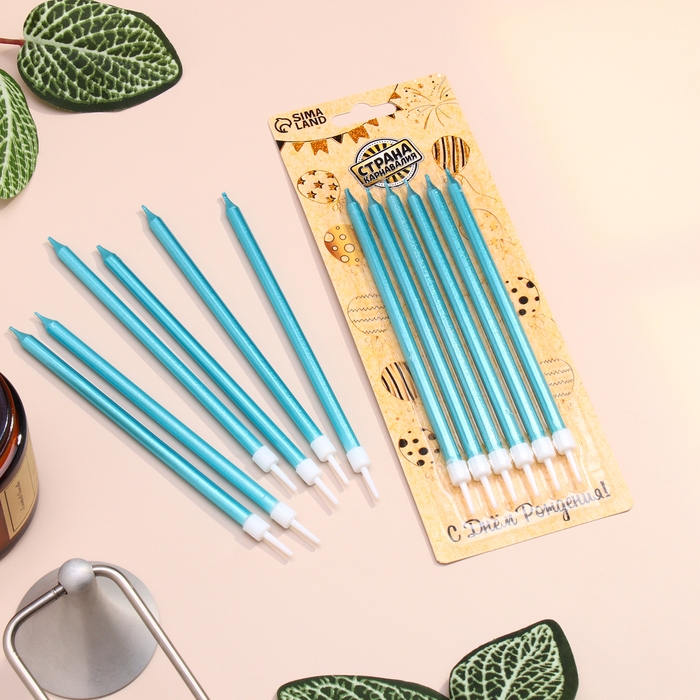 Свечи в торт "Ройс", 6 шт, высокие, 12,5 см, небесно-голубой металлик