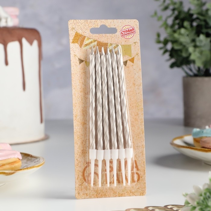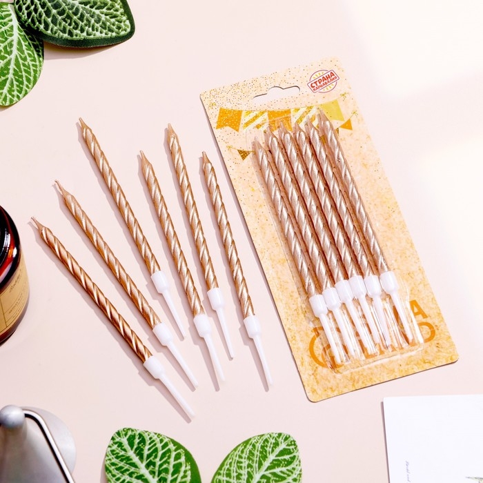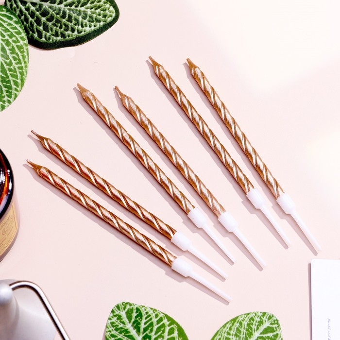 Свечи в торт витые с подставкой, 6 шт, 11 см, шампань