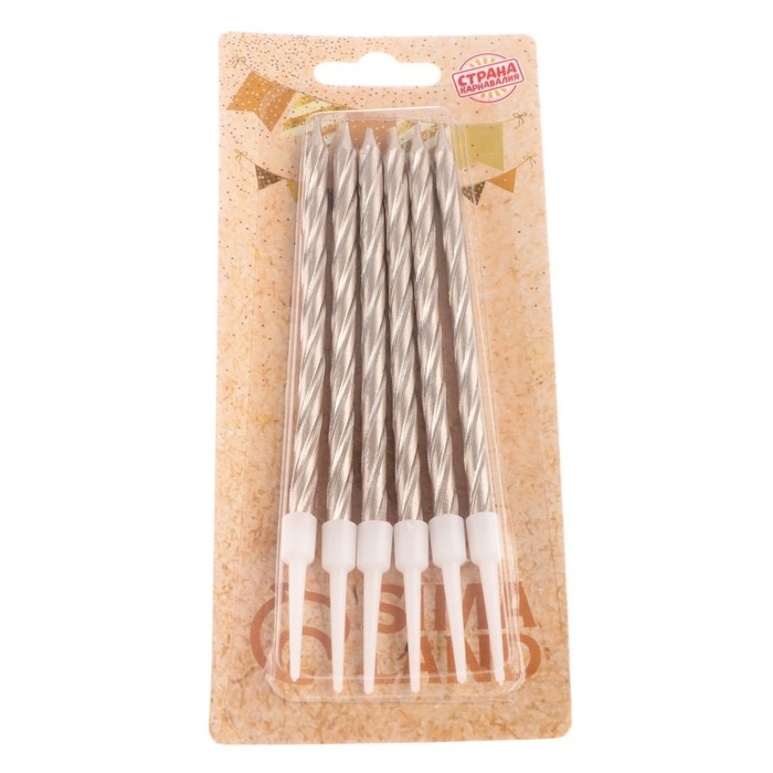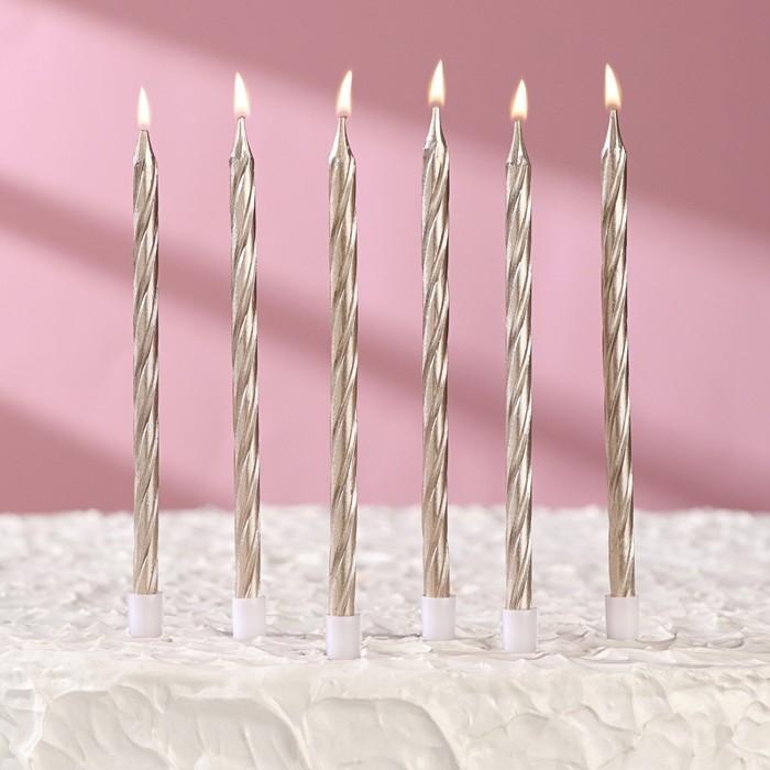 Набор свечи в торт "Спираль", 200шт, 5 см, серебряный металлик